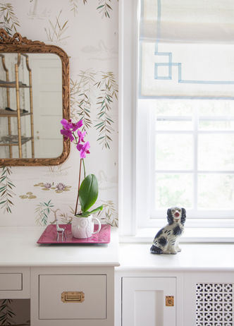 An element of whimsy infuses this traditional and pretty home giving it a glamorous vibe.