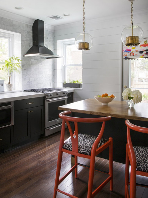 Obviously I went bold with my orange and leopard counter stools. I love the timelessness of my black and white kitchen, but I really needed a fun moment. I can’t thank my friend, Melissa, enough for painting them for me. I knew from the start I wanted something a little surprising for my stools. It’s low commitment, high reward. In 6 months if I’m so over orange, I’ll just beg Melissa to paint them a new color for me :-)